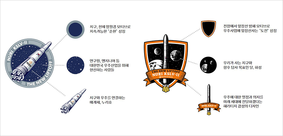 ▷ 우주사업 엠블럼 2종 제작… 지속 가능한 내일 상징 '원형', 앞장서 도전한다는 '방패형'